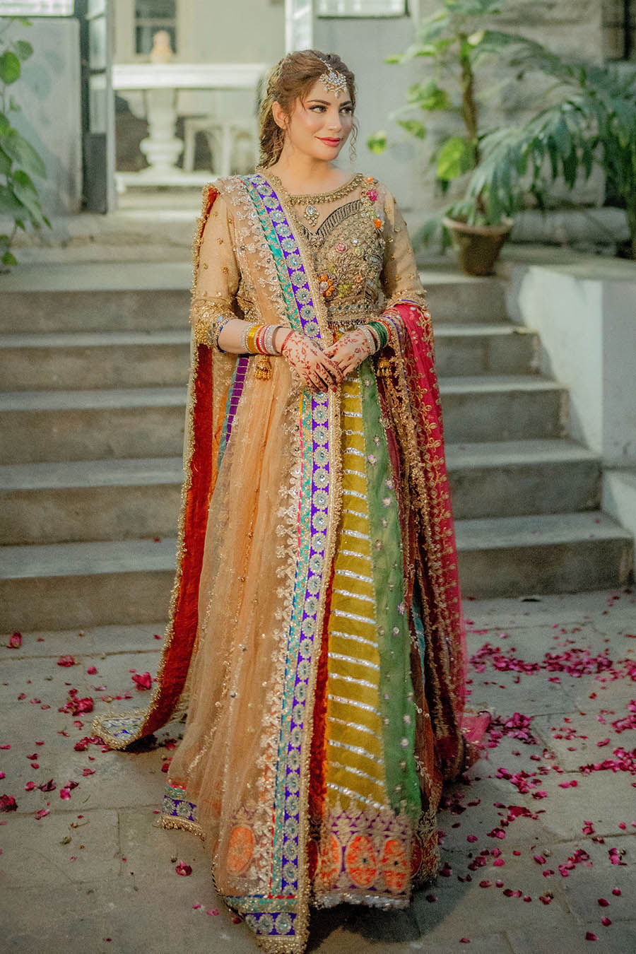 Heavily embroidered net saree composed with tilla embroidery and foil worked borders paired with self-colored petticoat